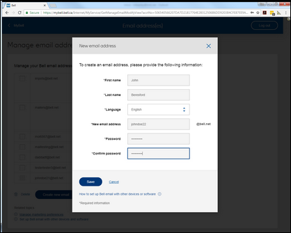 Create a Bell email address