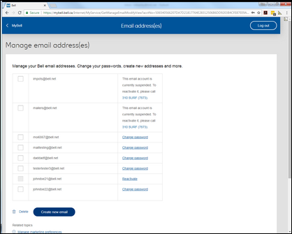 - Scroll to the Manage Bell email section, then click Manage your Bell email.